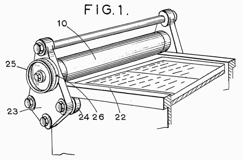 Both presses include the Farley Patented Drive. It appears that in 1957 Farley was awarded a patent authored by Leonard Harding, in which an eccentric within the main impression roller could be used to adjust the height between the bed of the press and the impression roller. While this sounds like a small indulgence, it allowed printers to proof from type on galleys, directly from the bed or use foreign types of different types through a simple adjustment.